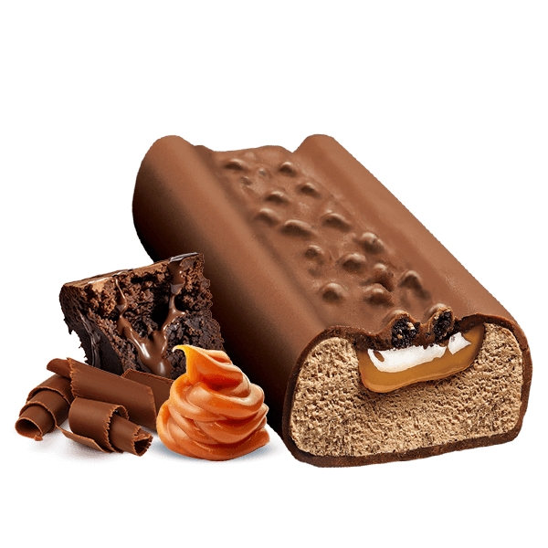 Indulge in the sophistication of premium chocolate ice cream adorned with a generous caramel core, ample portions of chocolate brownie cake, all luxuriously coated in Belgian chocolate.