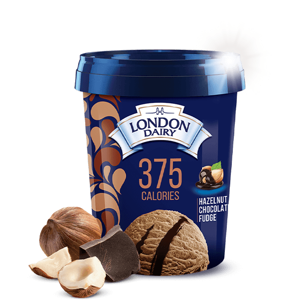 Immerse yourself in the divine indulgence of our hazelnut flavored low-fat ice cream, adorned with luxurious swirls of velvety chocolate sauce.